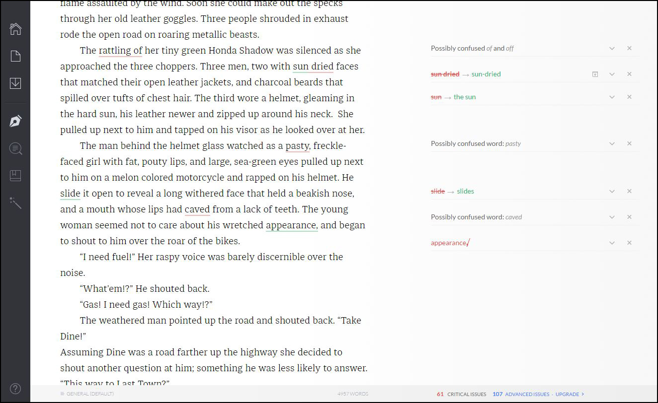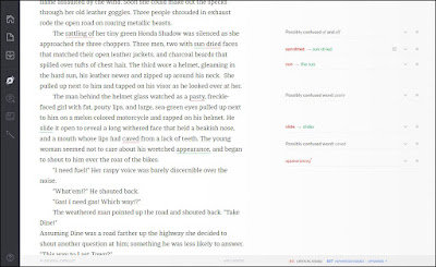 One of the biggest benefits of writing in our modern times is the automatic editing features we have at our immediate disposal. Spelling and grammar checks can happen in the moment instead of through revisions, which can save time and- depending on your opinion on the matter- can teach us while we write. Despite there being a great sense of nostalgia when writing with pen and paper or (sorry Harlen Ellison) a typewriter, I can't help but prefer my Macbook and it's wide array of tools.